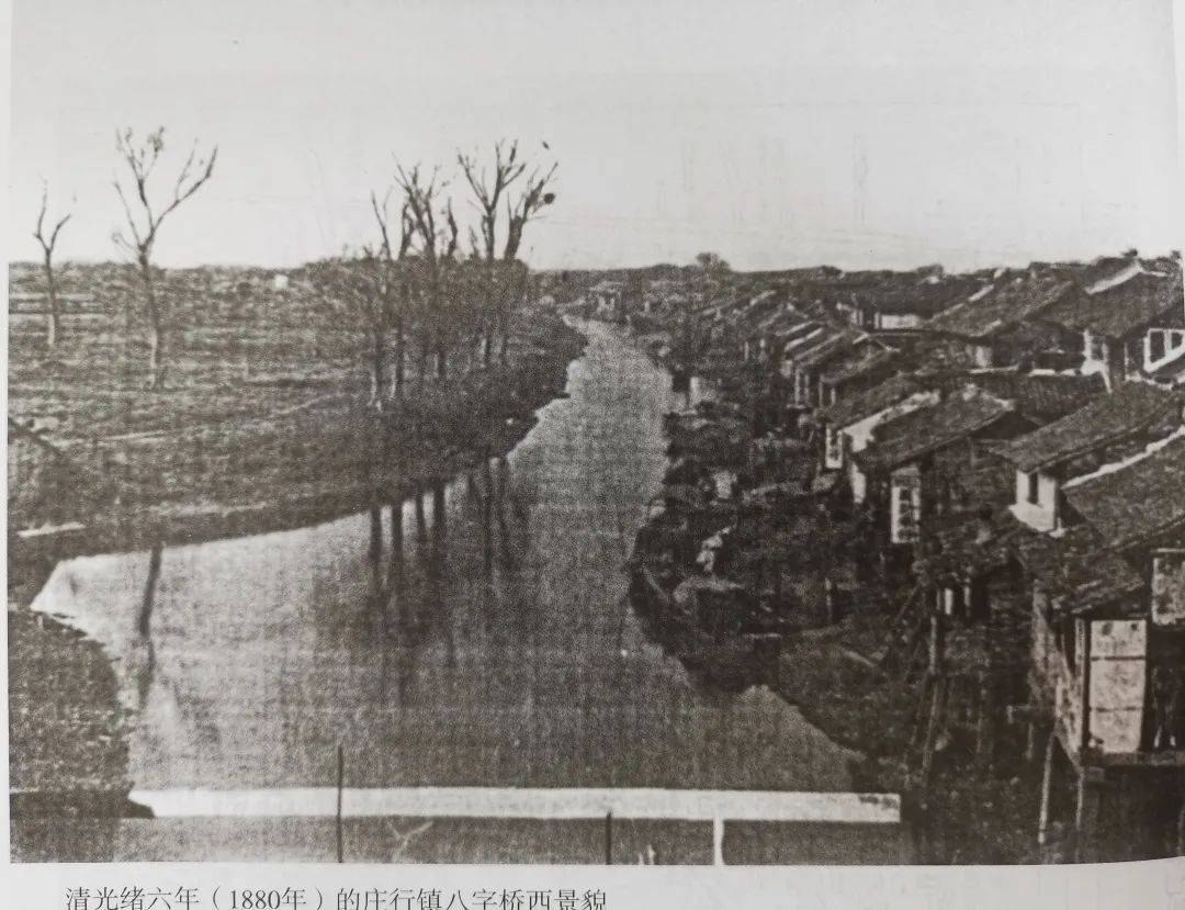 “最早的照片摄于清光绪六年(1880年),是一名外国人从庄行八字桥往西拍摄的米行林立、舟楫辐辏的繁荣景象。”——《奉贤县图照志》序