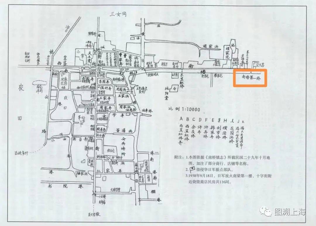 1940年南桥镇区示意图中的南塘第一桥原址,来源图溯上海