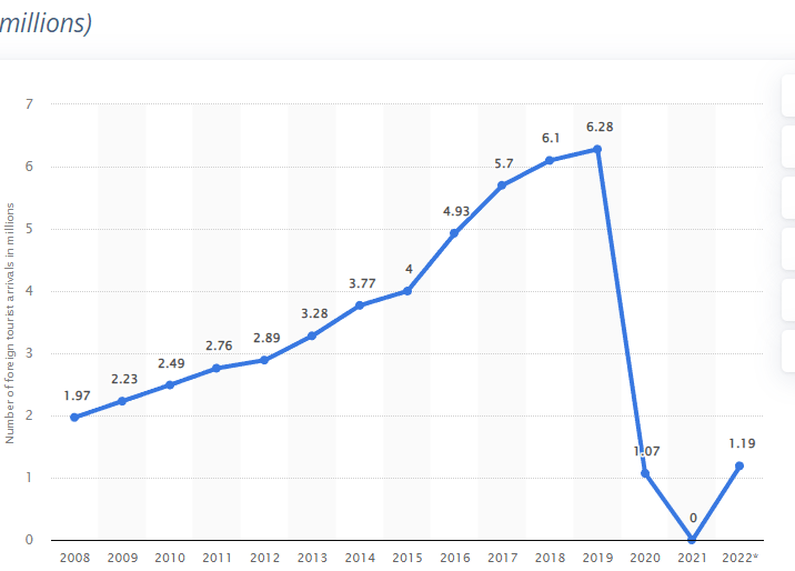 巴厘岛历年接待外国游客人数(数据来源:statista.com)