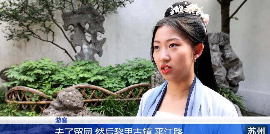 “去了留园,包括黎里古镇、平江路、七里山塘,还有东方之门都去过了。网上有很多这种打卡的照片,觉得这里的古镇、园林很好看,很适合穿汉服”,一名从青岛来的游客说。