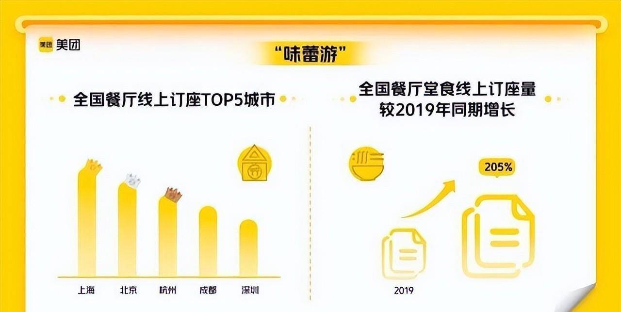 为“食”而动,寻“味”而出,“味蕾游”成为众多消费者出行的最新选择,据美团发布数据显示全国食堂线上订座量增长205%。上海“本帮菜”、北京“烤鸭”“狂飙”的猪脚面、“淄博小烧烤”、麻辣“重庆火锅”“武汉小龙虾”等均成为今年消费者寻找的“味蕾”刺激。