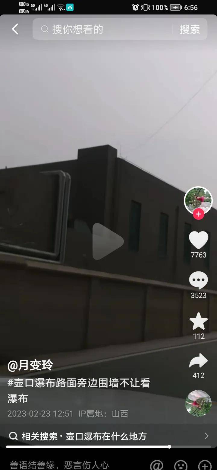 但是你如果细心的发现找到原作者;及发布者,感到吃惊,从作者属地为山西,而且熟悉地貌,口音像及壶口瀑布山西地当地乡音。从抖音帐号来看,叫,月变玲,只有几百粉丝,是个女性,而且2月份就开始发同样视频,值得质疑。如果真的是外地游客对当地有所差评,那也是人之长情。