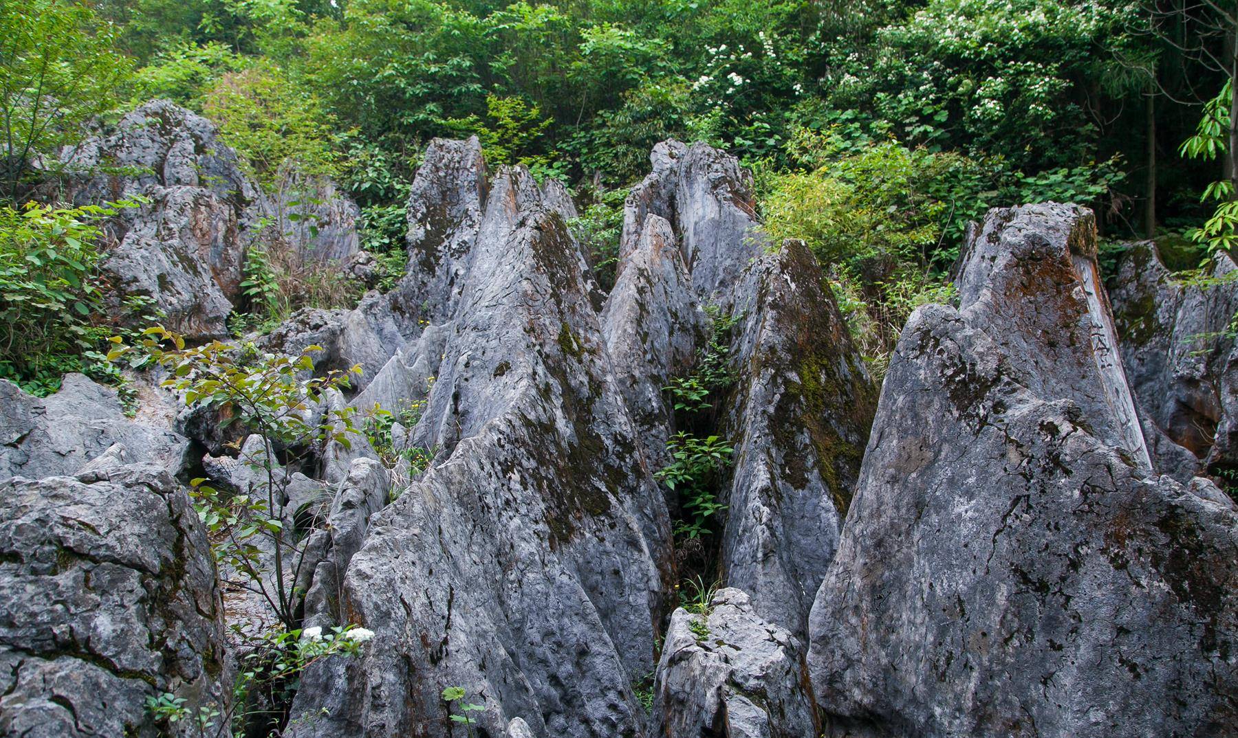 位于常山县境内,主要是石芽和溶沟,属于喀斯特地貌的初级发育阶段。这里的石头没有直上直下,高峰林立,恰恰相反,每一块石头都是和蔼可亲的。优美婉转的曲线,不拘泥形式的造型,让这群石头们看起来更像是一个个生动活泼的动物们。