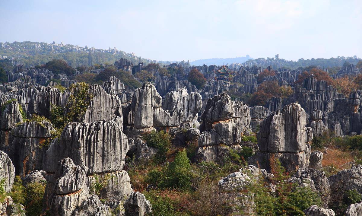 位于昆明市石林自治县,是一片片岩石组成的大“森林”。穿行其间,像走在奇异的树林里。形状各异的石头,不像是天然,更像是有人特意制作而成,像屏风、像大象,像骆驼,像老鹰,像宝塔,等等。只要你能想到,都能和它们对上号。