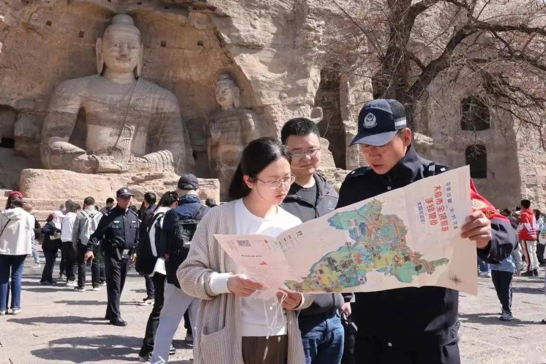 游客在云冈石窟欢度假期之时,有这么一群人,他们紧跟新时代号召,大力弘扬劳模精神,“五一”期间放弃了美好的假期,为了给来云冈石窟景区参观的游客提供更安全的旅行保障、更便捷的服务享受、更丰富的游览体验,坚守在“冈”,贡献着个人力量,用奋斗演绎新时代的“劳动美”。