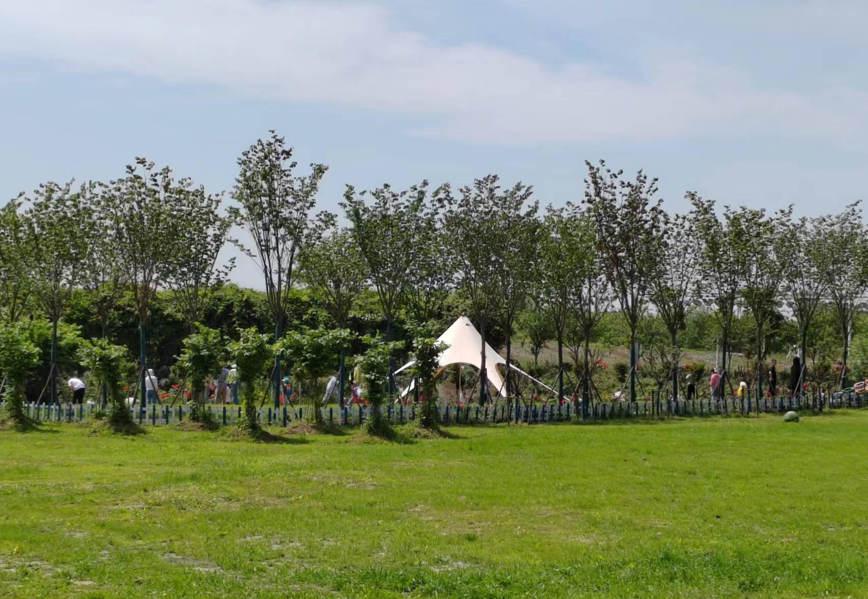 朋友在农村投资了一片区域,发展乡村旅游。经过前期的准备,今年五一期间对外免费开放,吸引了周边众多游客前来打卡,十分热闹。在朋友的邀请下,趁着假期我们一行人来到这里。还未走进园区,就听见孩子们的欢笑声,草坪上孩子们或是在放风筝、或是在奔跑、或是在踢足球,好不开心。