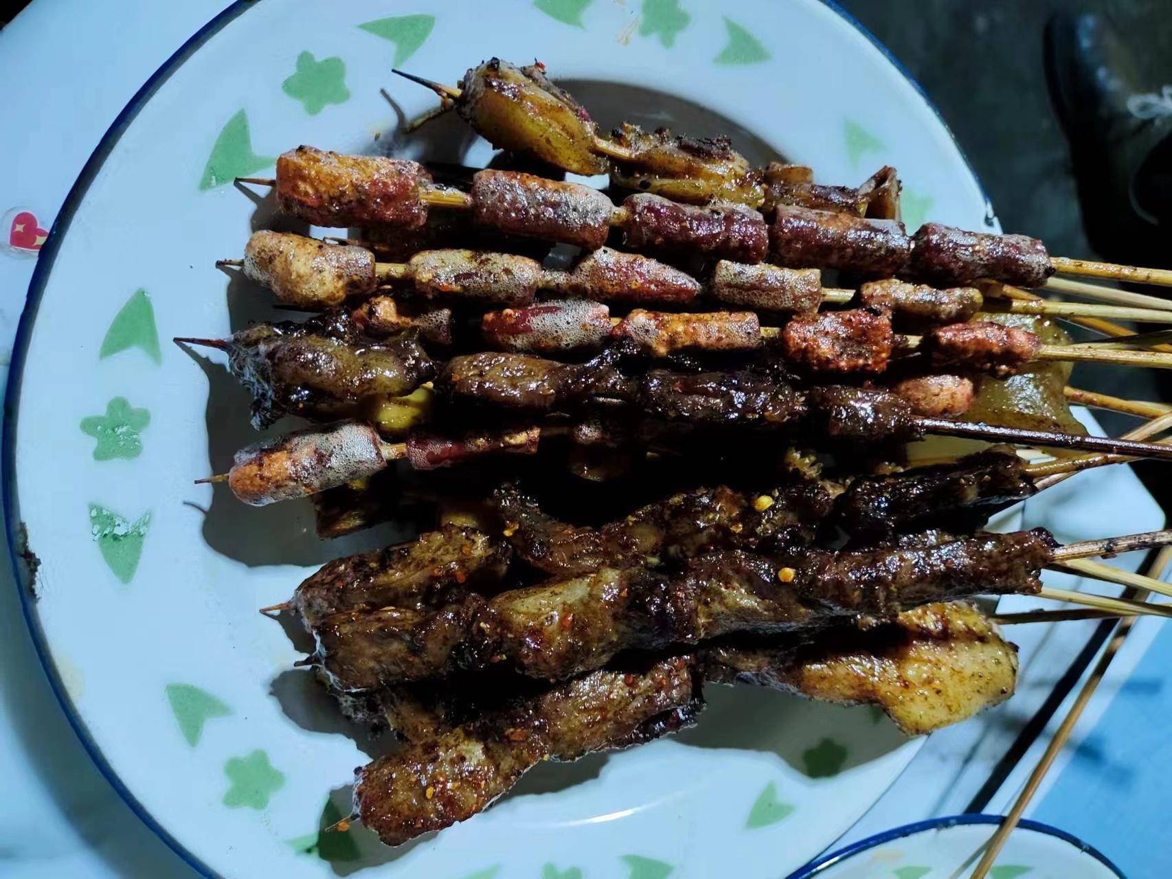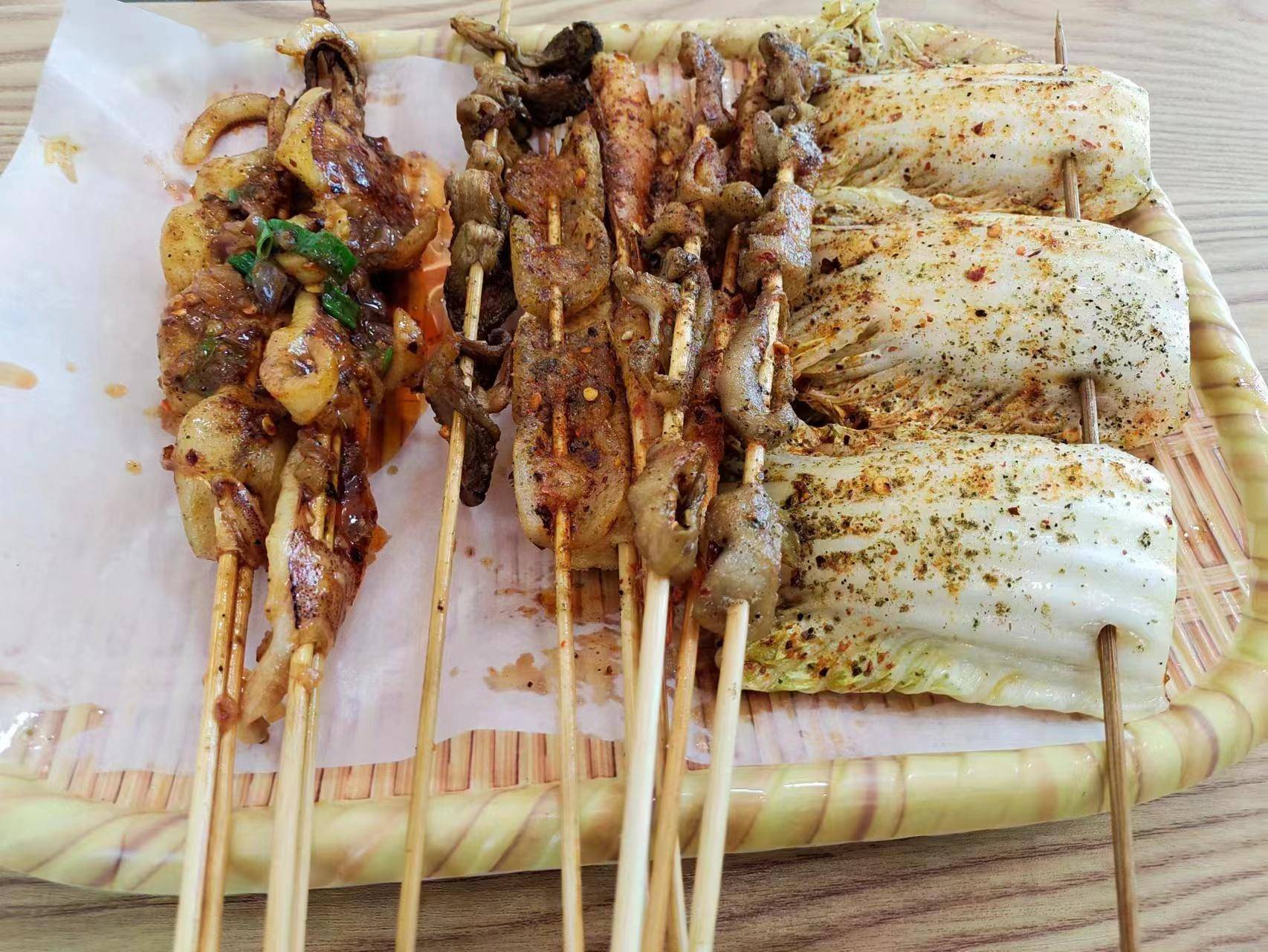 朋友估计是看陈林点的都不够有特色,于是加了粉肠、鸡脚筋、牛胸膘、猪皮、鸡翅等,这些在云南吃烧烤,是非常常见的,尤其是鸡脚筋还有胸膘,爱吃的人特别多。