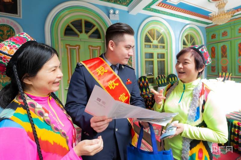 伴着和煦的春风,在第32个全国税收宣传月期间,喀什税务干部走进喀什古城沿街商户,开展税收宣传,征询意见建议,通过线下实地走访、线上直播联动的方式,让更多的纳税人缴费人了解税收优惠政策及便民举措。
