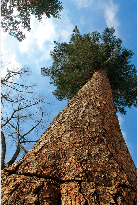 直,直刺蓝天。传说:俄国人锯了一锯,没放倒;日本侵华时期锯了