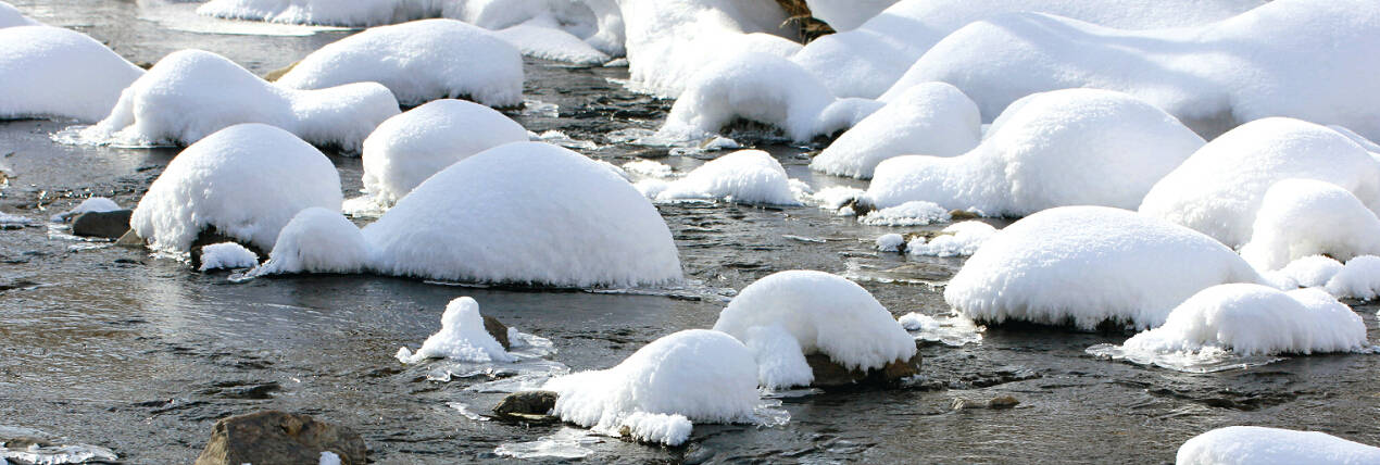 植物园内有一段神奇的河流。不知何种原因,河水寒冬不结冻,形成了水花、冰花、水中雪蘑菇动静结合的美丽景观,令人叹为观止。