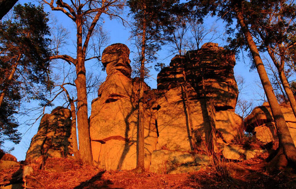 飘渺幻化的云雾,为簸箕崴子平添了几分神秘与深奥。它既有巍峨的石林、石峰、石壁,又有静谧的幽谷。逆溪流而上,渐入佳境;步入峰顶,犹如仙界。在山下仰望,山以石屹立,石使山峥嵘,那种气势不得不让人拜服和屈膝大自然的鬼斧神工。