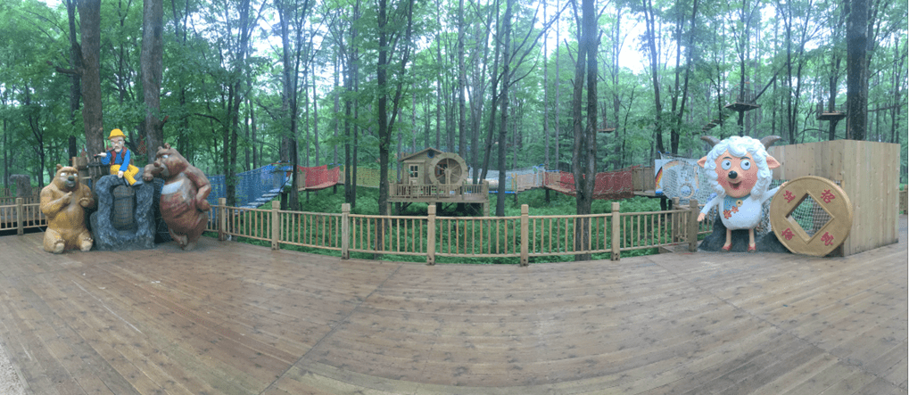 丛林空中探险共分成人区和儿童区,成人区包括空中吊台、时光隧道、断桥、走钢丝、梅花桩、幸运光环等16种娱乐竞技项目;儿童区有钻元宝、时光隧道、卡通木屋等10个娱乐项目。