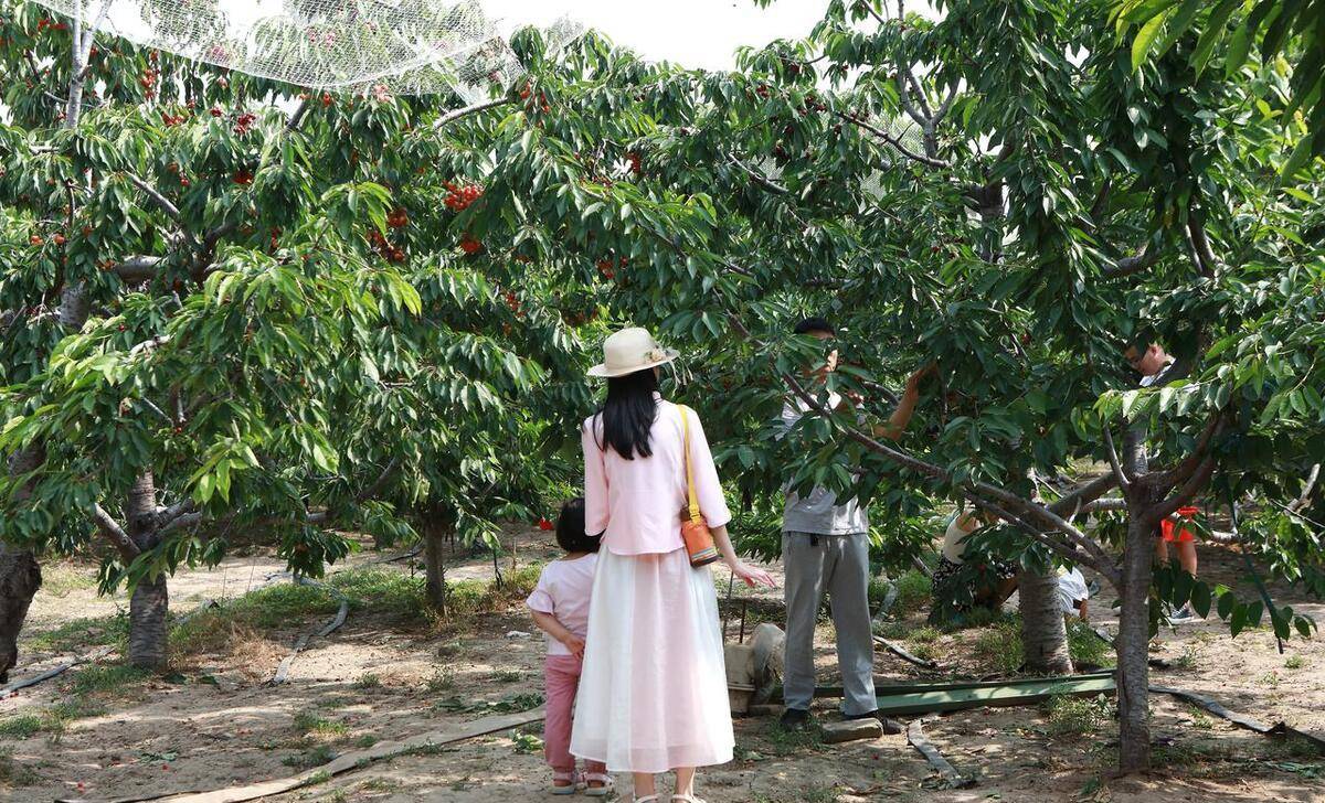 去的路上我还想,去樱桃园也不错,现在樱桃虽然贵点,但是几个孩子能摘多少呢?而且摘完樱桃可以就近吃个农家饭,比去城里饭店还便宜些。