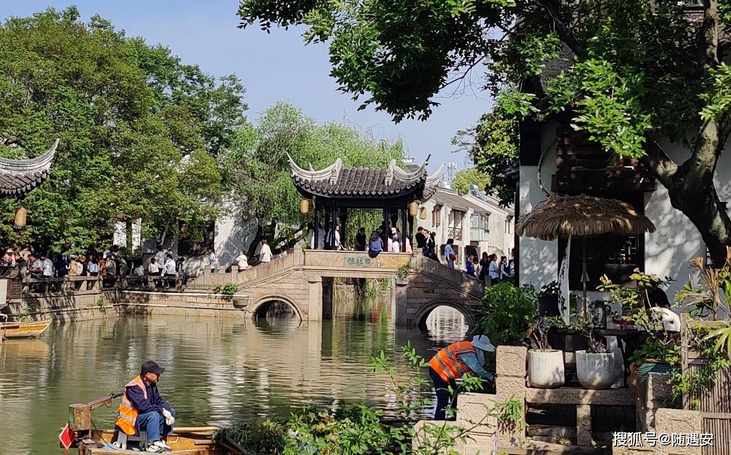阳澄湖休息区改建后规模扩大许多,停车场也不小,由于车多,找停车位也花费不少时间。休息区两头分别是新能源汽车超值体验中心,休息区中间一条水道,两侧是商铺,通往后园的拐角处有个小戏台,有女子怀抱琵琶自弹自唱,一口苏州味十足的评弹,吸引游客驻足观看。休息区后面是苏州味十足的小型园林,供人们在此小憩。