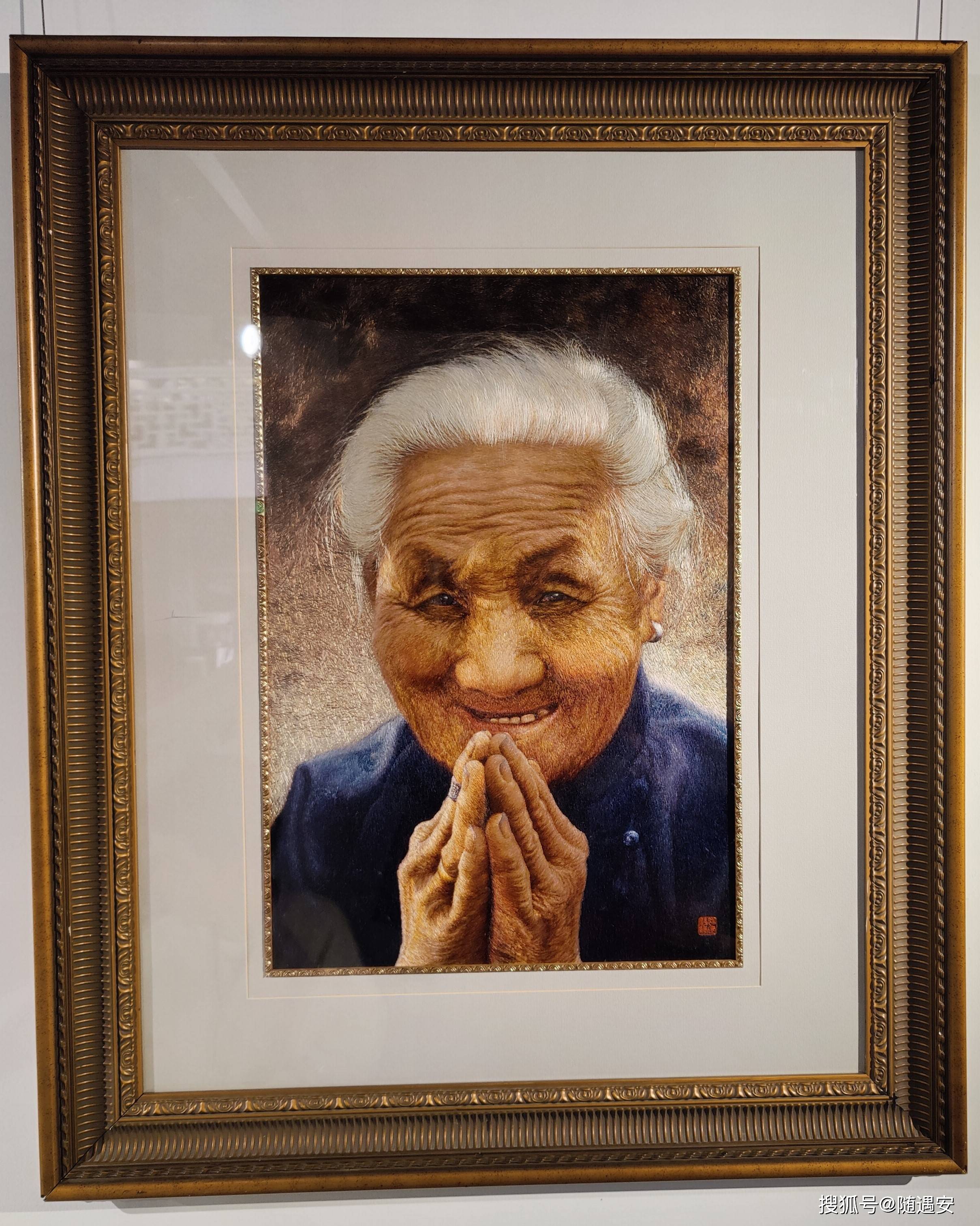 展出的绣品中,人物绣像颇具油画风味,精致之极。《蒙娜丽莎》、《母亲》精气神俱佳。