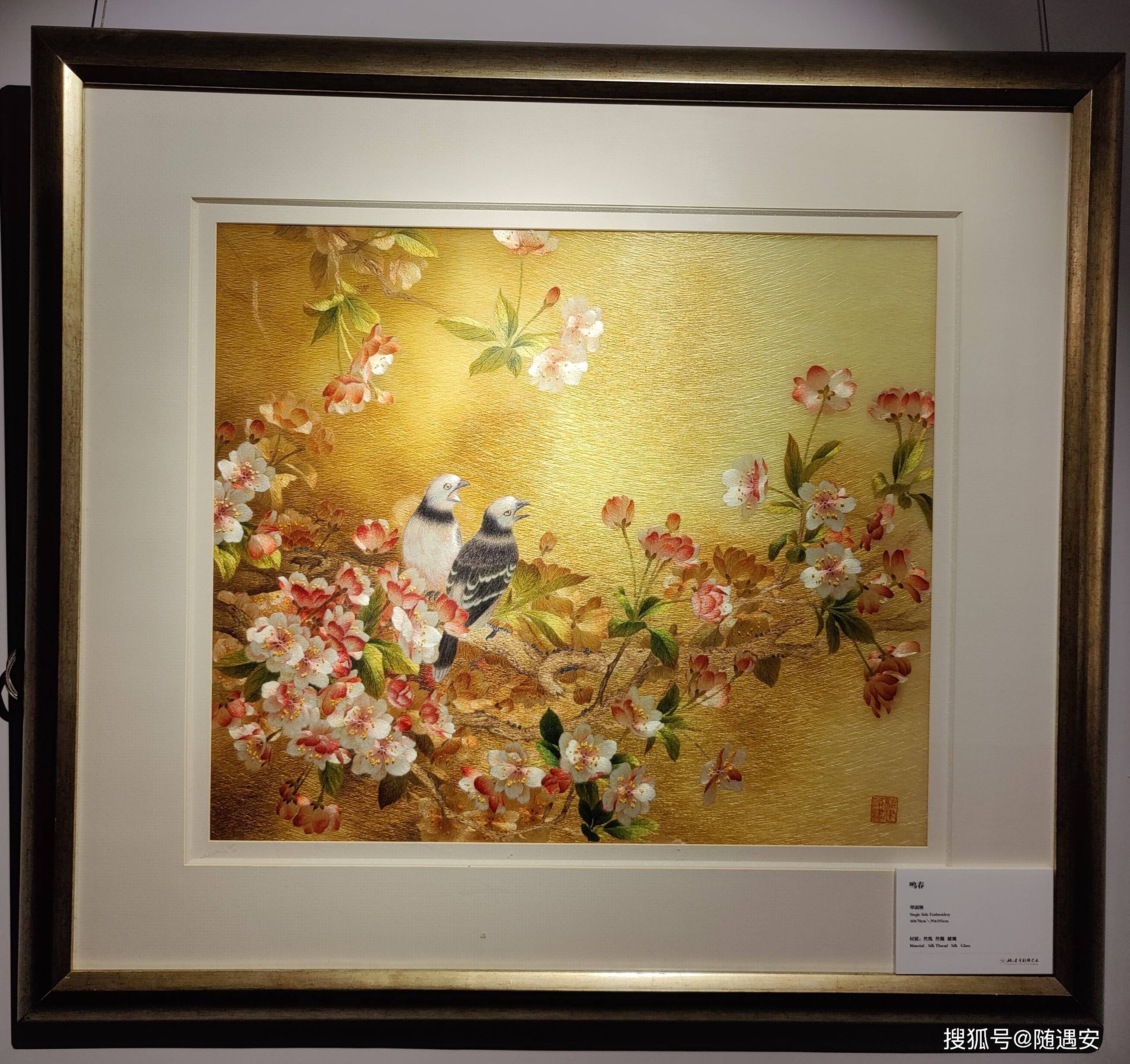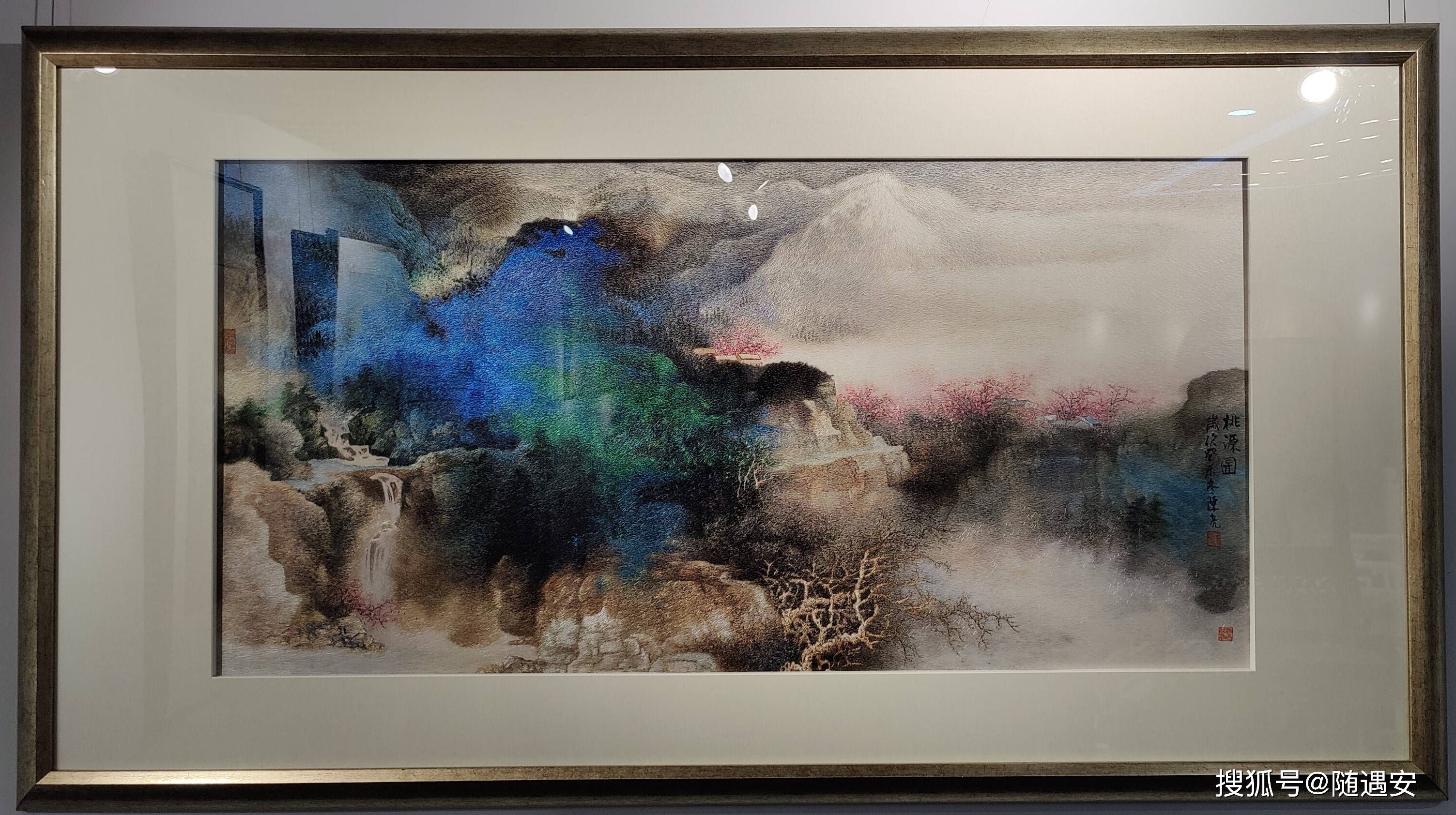 山水花鸟绣品也颇有特色,《桃源图》《苍松傲峰》《鸣春》通过丝线将深远画意尽展眼前。