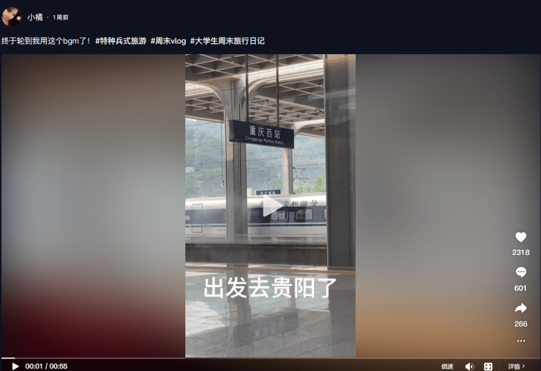 行程基本上就是跟着网上推荐的旅游攻略走,最长不过 30 小时,挨个打卡当地的特色美食和地标建筑,然后用 vlog 的形式记录下来,一键生成类似“糖水喝了,煎饼吃了”这样的文案,再套用特种兵旅游专用的模板和配音~
