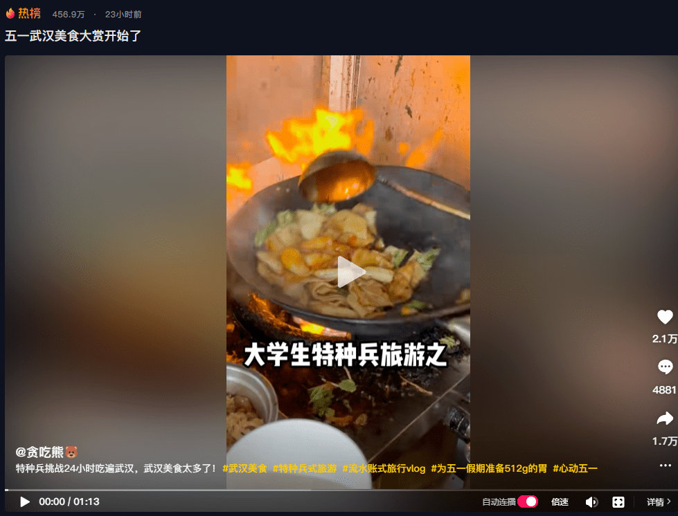 这不,不止是五一,最近的很长一段时间,狐妹都频繁刷到 “ 24 小时逛吃某地”的视频。