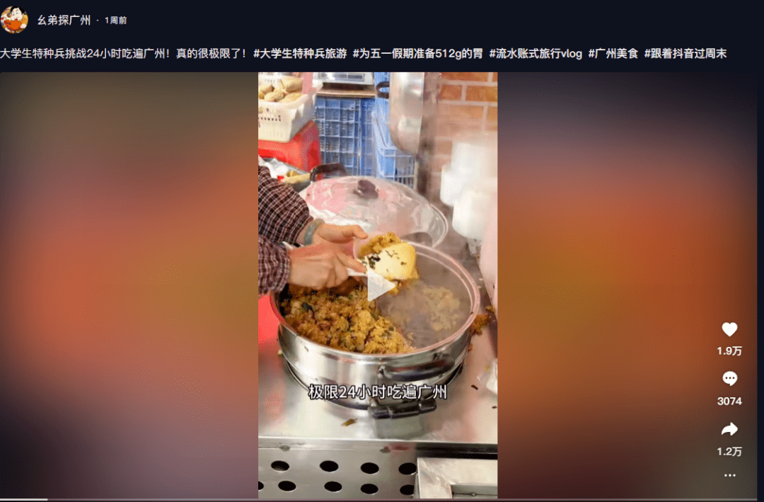 就比如说下面这种,挑战 24 小时吃遍广州的。