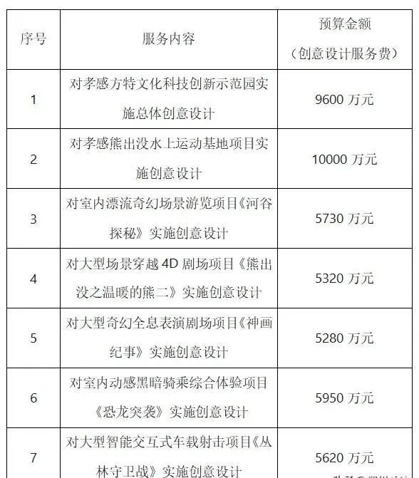 近日,孝感方特文化科技创新示范园项目和孝感熊出没水上运动基地项目创意设计单一来源采购公示,孝感方特创意设计预算4.75亿元。