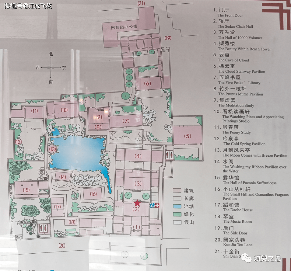 从平面图上来看,作为典型的宅园合一的私家园林,网师园分三部分,境界各自不同。东部为住宅,中部为主园,西部为内园(风园),占地约1亩。
