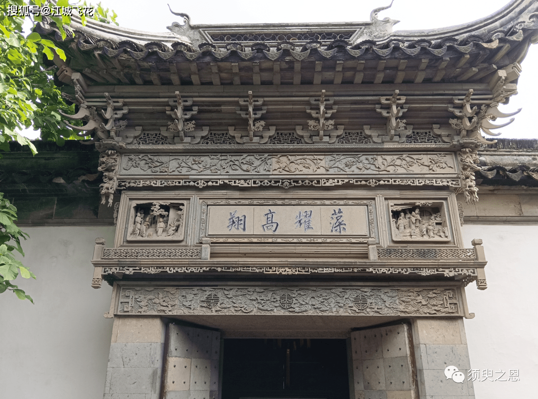 出了轿厅,就是万卷堂,两建筑物中间有个小小的天井。轿厅背面有个乾隆间的砖雕门楼,高大巍峨,雕镂精巧,号称江南第一砖雕。苏州砖雕门楼很多,什么雕花楼或者师俭堂等都有,且大多号称江南第一砖雕或者华夏第一砖雕,或许他们可以先内部较量一番再排排坐吃果果。砖雕两旁分别雕刻着“郭子仪拜寿“和”文王遇姜尚“的故事,匾额上有四个大字“ 藻耀高翔”。
