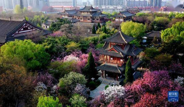 近日,陕西省西安市青龙寺遗址景区内的樱花大面积开放,如云似霞的花海与仿唐建筑群相互映衬,独特的春日古典之美吸引大量游客赏花游览。