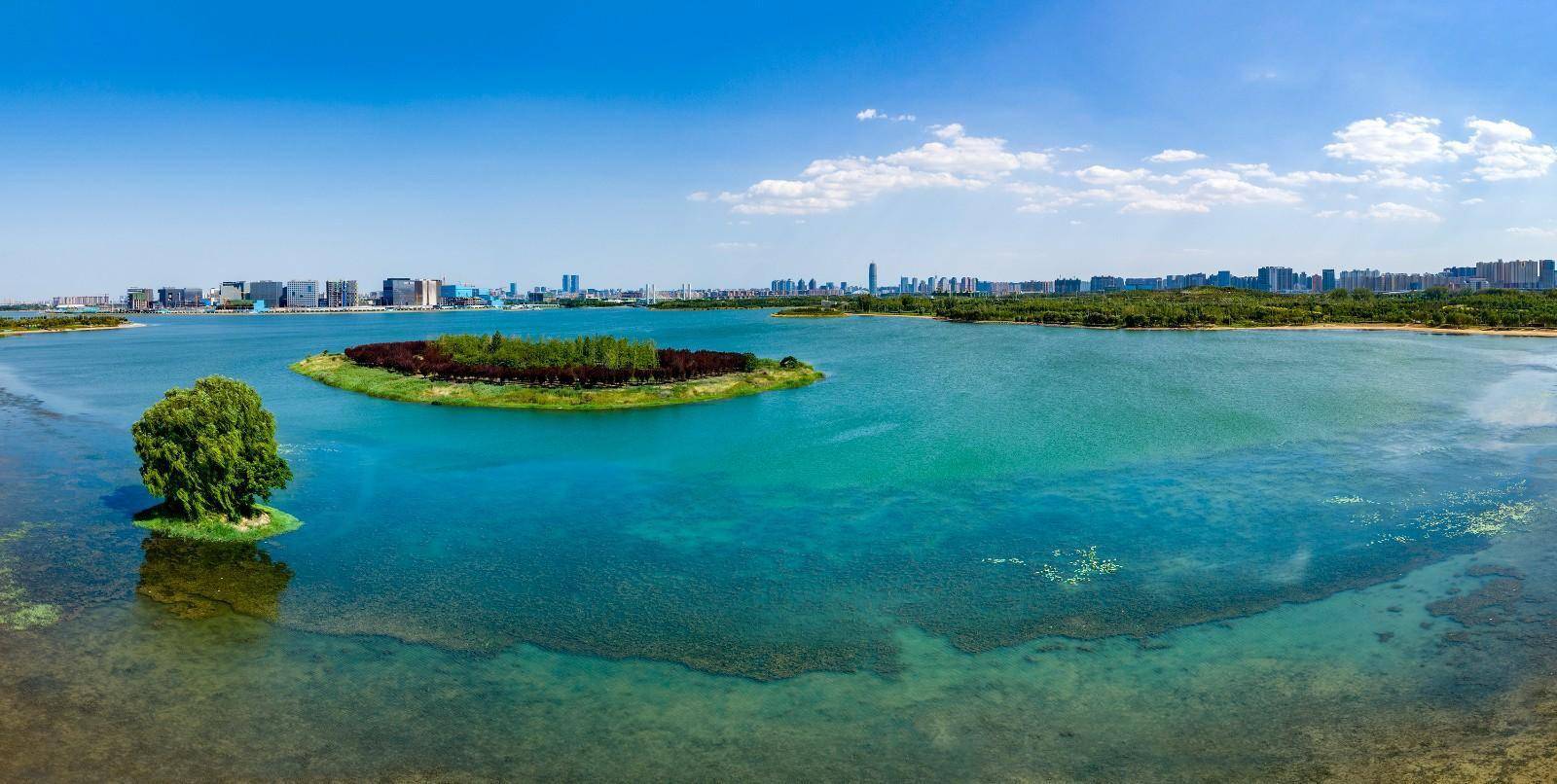 CBD中央是占地160亩的如意湖。沿着如意河一直向北,是“点睛”东区的龙湖,如今亦是水波潋滟、飞鸟成群、游人如织。