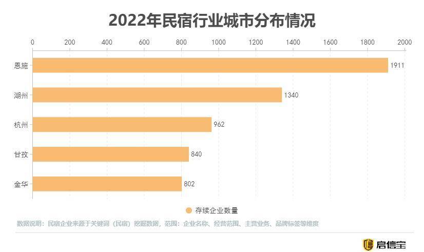 根据启信宝数据显示,全国企业名称、经营范围、主营业务、品牌标签等维度中包含“民宿”关键词的相关存续企业达近3万家,从地域分布上来看,现存企业最多的top5省份分别为浙江、云南、湖北、贵州及河北。