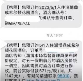 有网友发视频称收到了希尔顿酒店房价五一期间下调的消息,另一网友发文称之前订的1000元以上一晚的希尔顿酒店房间,现被通知改为571元一晚。4月26日,希尔顿酒店一工作人员回应因淄博烧烤热,客流量增大,政府为防止酒店房价过分上调,进行了价格控制和优化,这种不升反降的做法,网友们纷纷点赞。