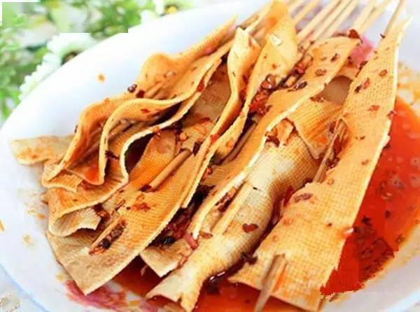 烧烤细心地区分肥、瘦,一个油而不腻,一个细嫩不柴,简直是人间美味;牛肚和豆腐皮也是每桌必点,然后夹在馍里,滋味销魂。