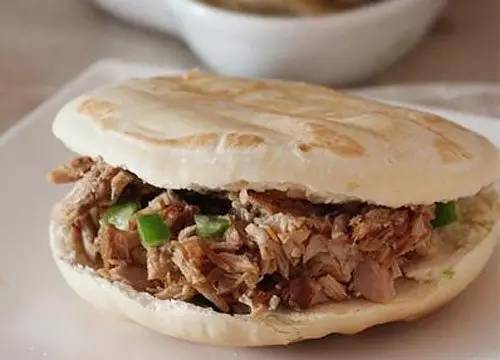 肉夹馍的另一种形式,主要特点是它的馍用的是千层油酥,原名烧饼夹馍,起源于初唐。传说当年李世民路过潼关时,品尝过潼关肉夹馍后赞不绝口~千百年来,老潼关肉夹馍让人百吃不厌!