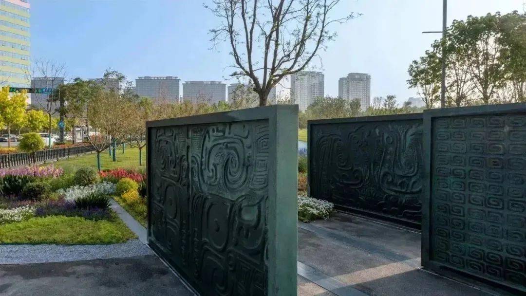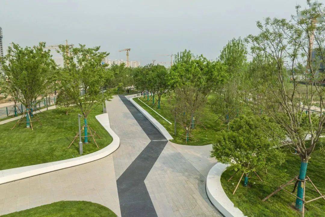 公园设计元素取自西周青铜器中的龙纹图案,布局“一轴、一环、三片区”,即公共活动主轴、生活慢跑环以及运动、生态、文化三大片区。