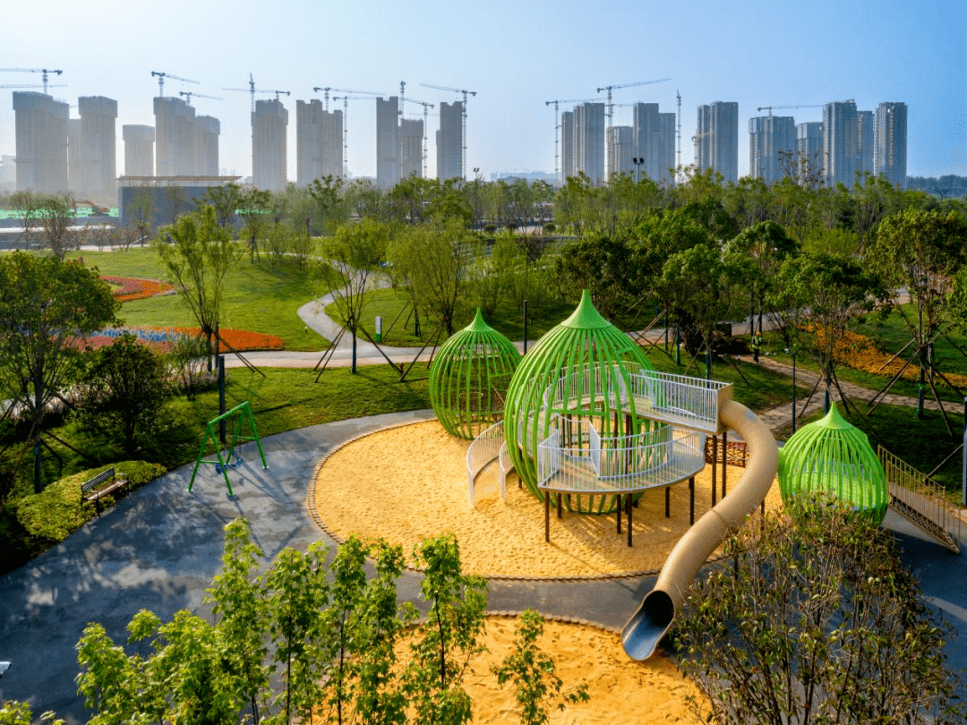 园内设置有儿童游乐区、篮球场、足球场、生态停车场、城市驿站等,是周边市民和上班族缓解压力和放松身心的好去处。