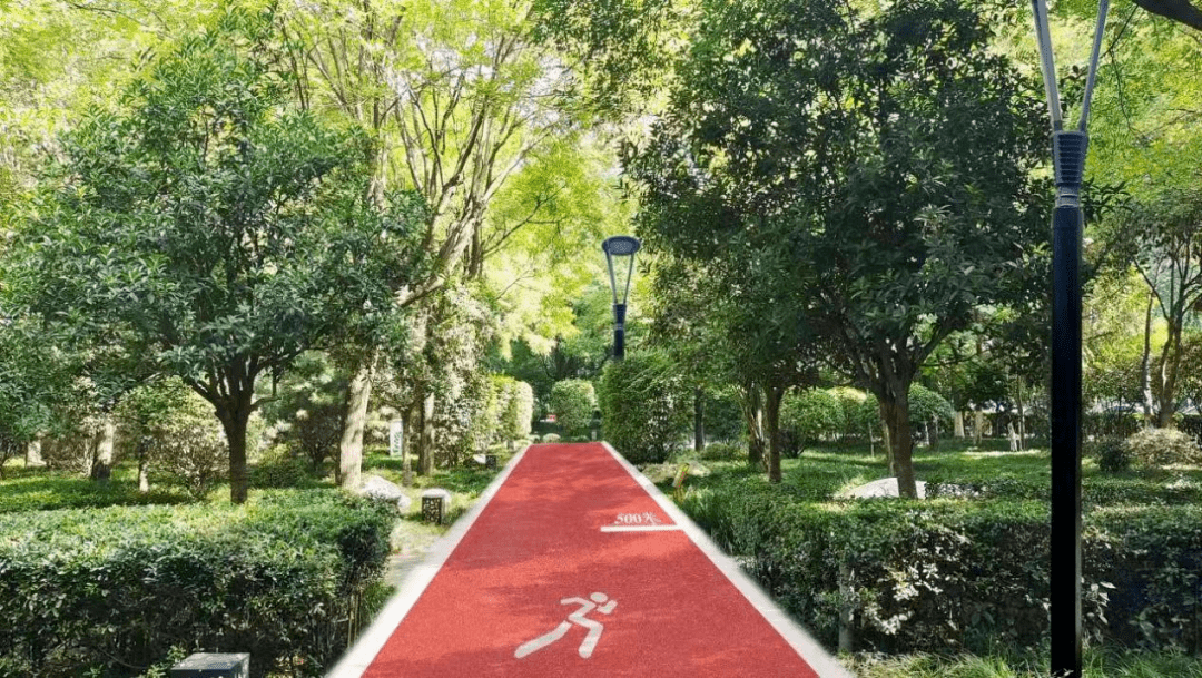 新跑道北起科技路,南至科技八路,宽2.6米,全长7公里,设计为铁锈红色的塑胶跑道,跑道每隔一段会喷绘距离的标识和彩绘,并设置有休息座椅,为市民提供更加舒适、便捷的跑步空间。