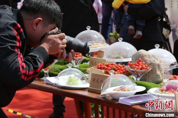 游客在拍摄“樱桃宴”菜品。 蔡亚群 摄