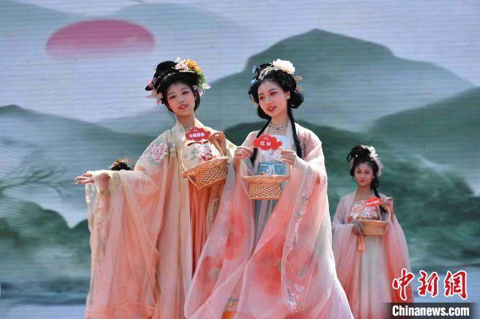 “樱桃国风秀”模特与儿童现场互动。 王海滨 摄