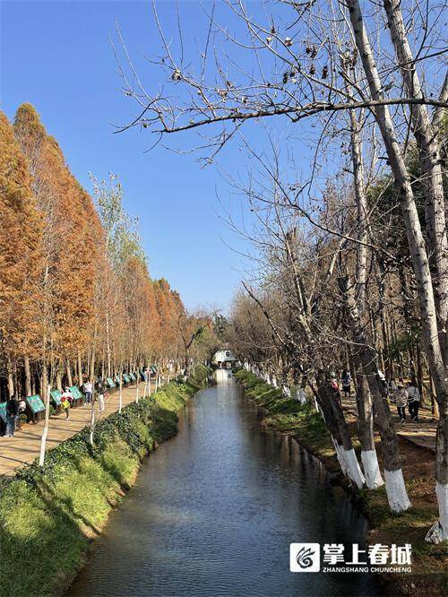 初春时节,位于官渡区环湖东路和湖滨路交叉口的星海半岛湿地公园内绿意盎然,干净整洁的步道、成片的水杉林,小桥下的潺潺流水,风景美不胜收。