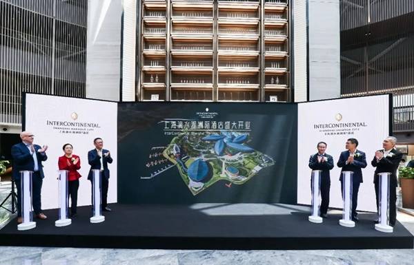 4月28日,"花开南岛,流光‘际'汇"上海滴水湖洲际酒店开业盛典顺利举办,临港新片区文旅新地标焕新开业。临港新片区管委会生态处处长龚红兵,商旅处副处长何晓英,港城集团党委书记、执行董事奚志忠,党委副书记、总经理邵宇平,监事会主席宋解兵,副总经理金玮琦,洲际酒店集团大中华区董事总经理及高级副总裁爱默尔,大中华区奢华及精品酒店运营副总裁林重盛,以及受邀的各界嘉宾一同见证了盛大的开业典礼。