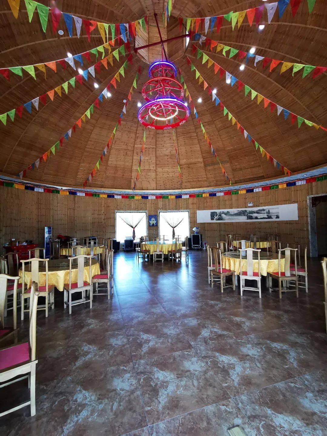 景区建有大型特色休闲餐厅700余平方米,设有蒙古包、豪华雅间、大厅等,可容纳300多人同时用餐;房车露营区有自驾车位200多个,房车车位10个,配置10个充电桩,上下水及配套设施;客房住宿设有蒙古包10个,独栋木屋8栋,洋楼木屋6间,豪华别墅一套,可容纳60人住宿;还有可容纳上百人的会议中心一处。