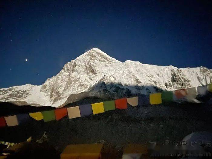“今晚是满月,也是佛陀诞辰日,”达瓦.史蒂芬表示。“普木日峰是此刻唯一明亮的山峰,因为(珠穆朗玛峰)西山肩和努子峰之间的月光如同探照灯一般。”