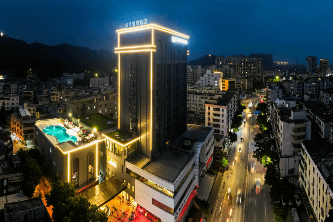 金泉御景酒店位于恩平市新平中路,楼高19层,国际酒店标准打造。酒店结合山水美景、餐饮文化、智能化旅居、休闲娱乐等元素,秉承“以人为本,服务至上”的经营宗旨,打造一座“会说话的酒店”。酒店用全智能科技、贴心的服务,开启生活从繁至简的惬意模式,给人视觉和心灵的全新感受,为每一位向往自在人生的旅客提供一个随心惬意的居住空间。酒店依山傍水,闹中带静,前临锦江、后枕鳌峰,秀丽景色近在咫尺,在闹市中匠心打造一个自在、亲近自然的商旅吃住玩乐空间。