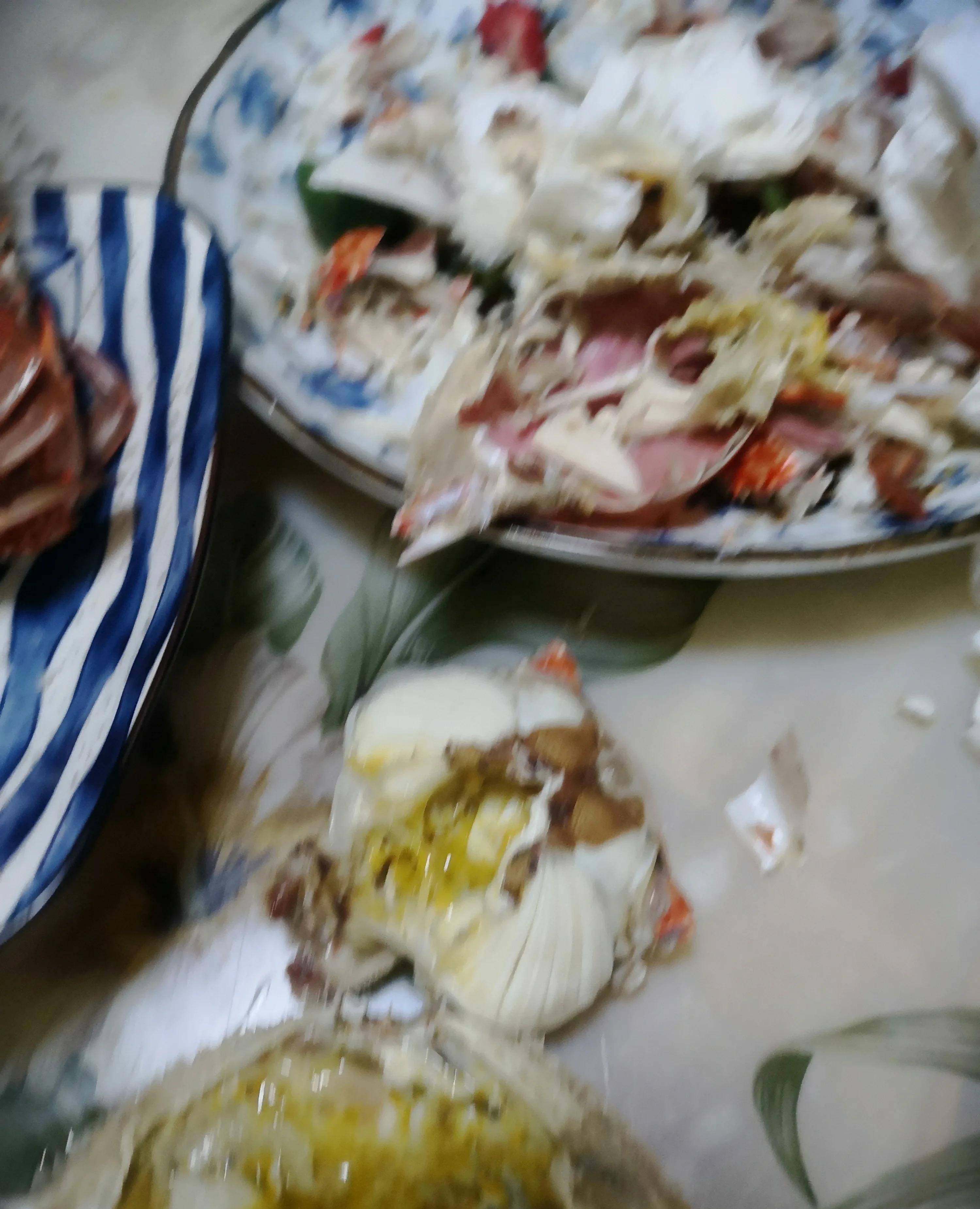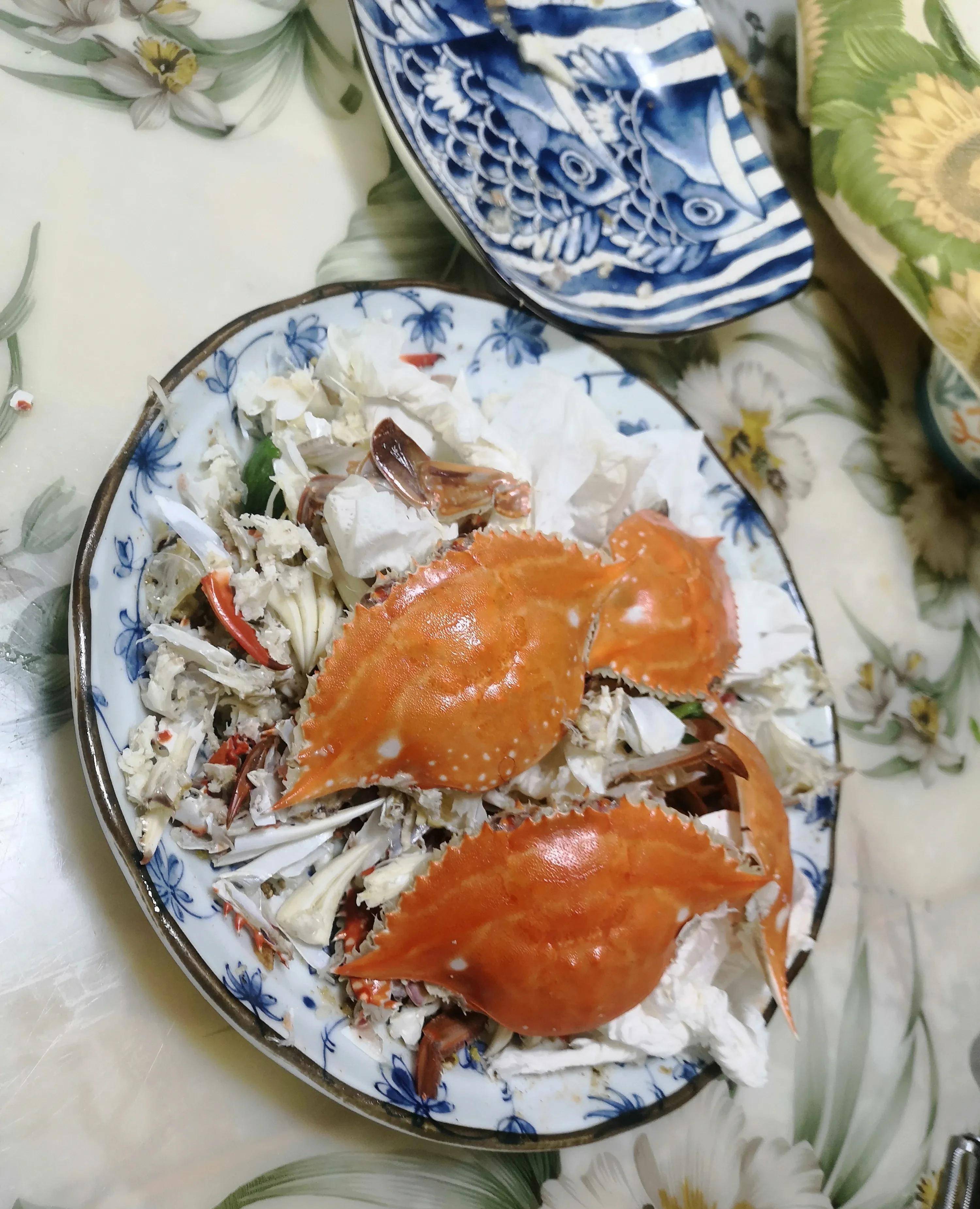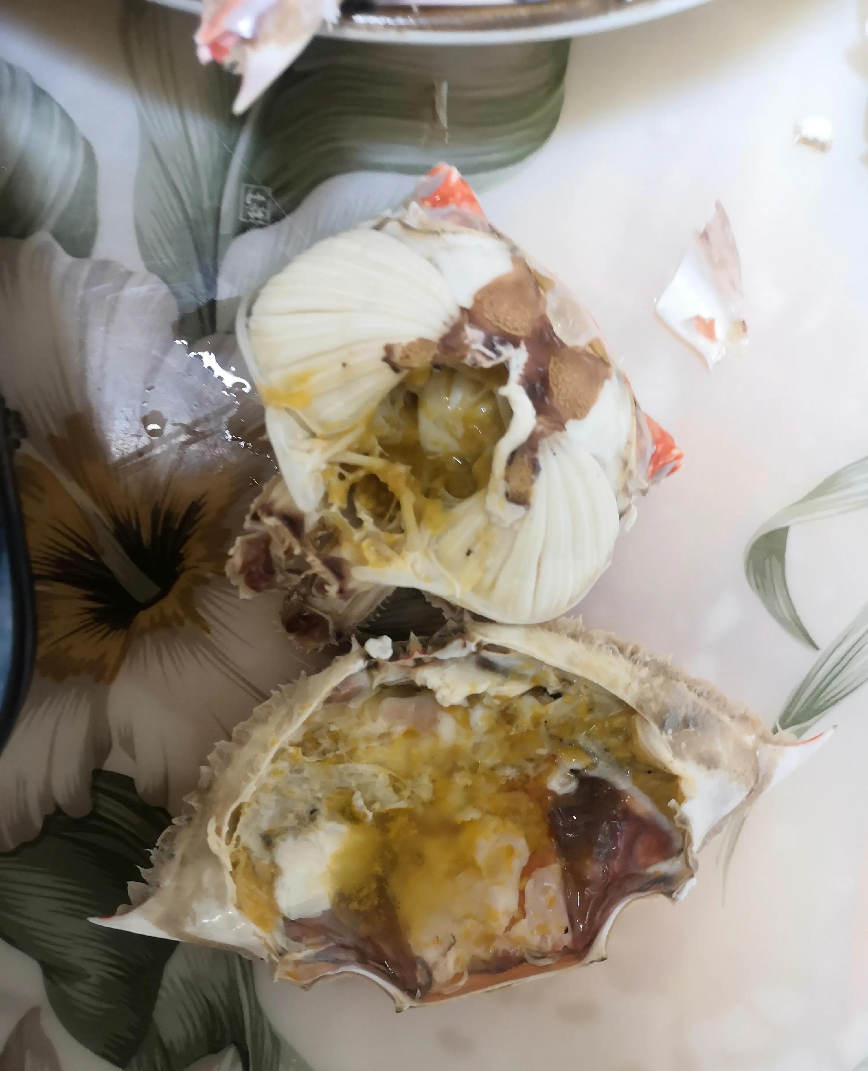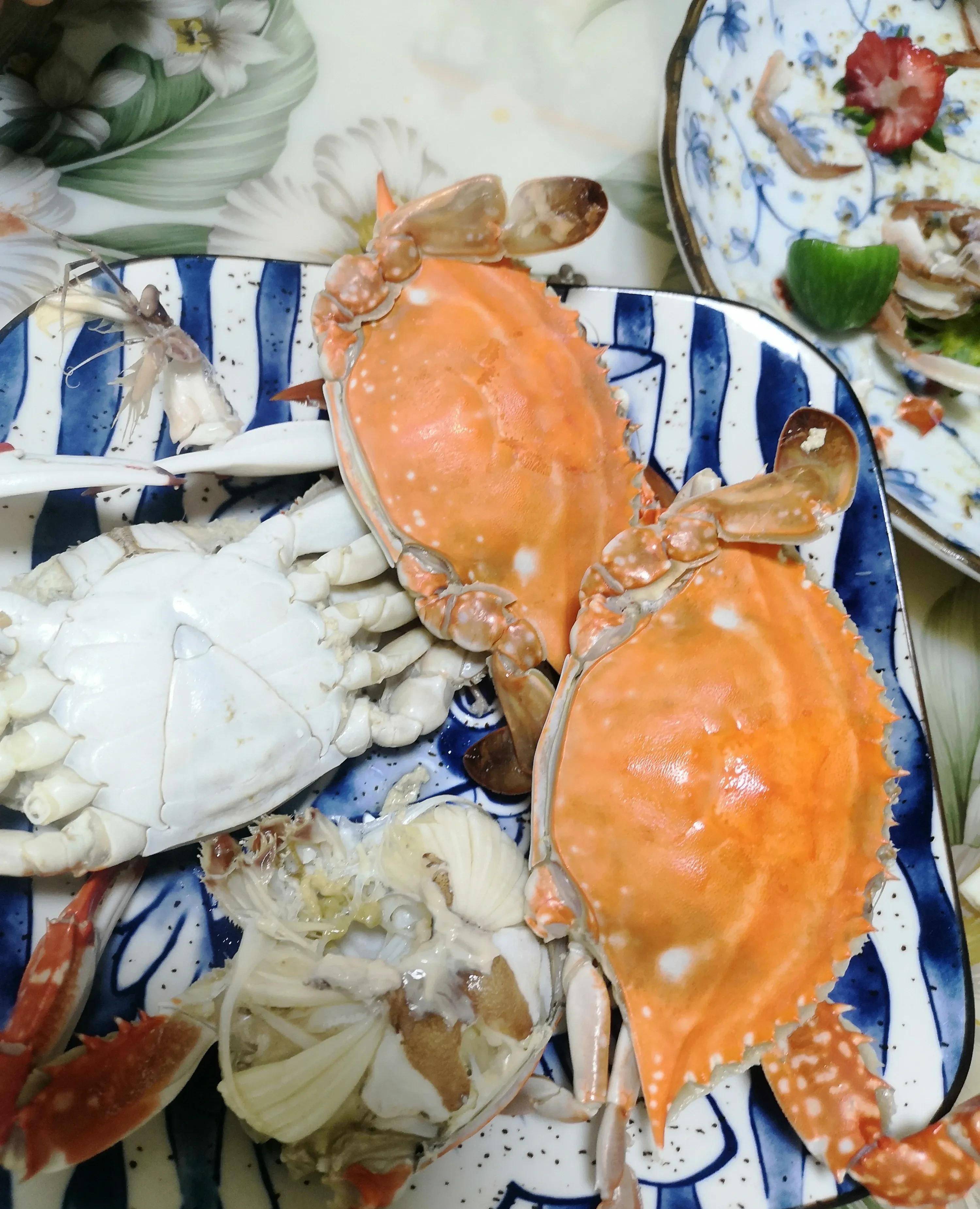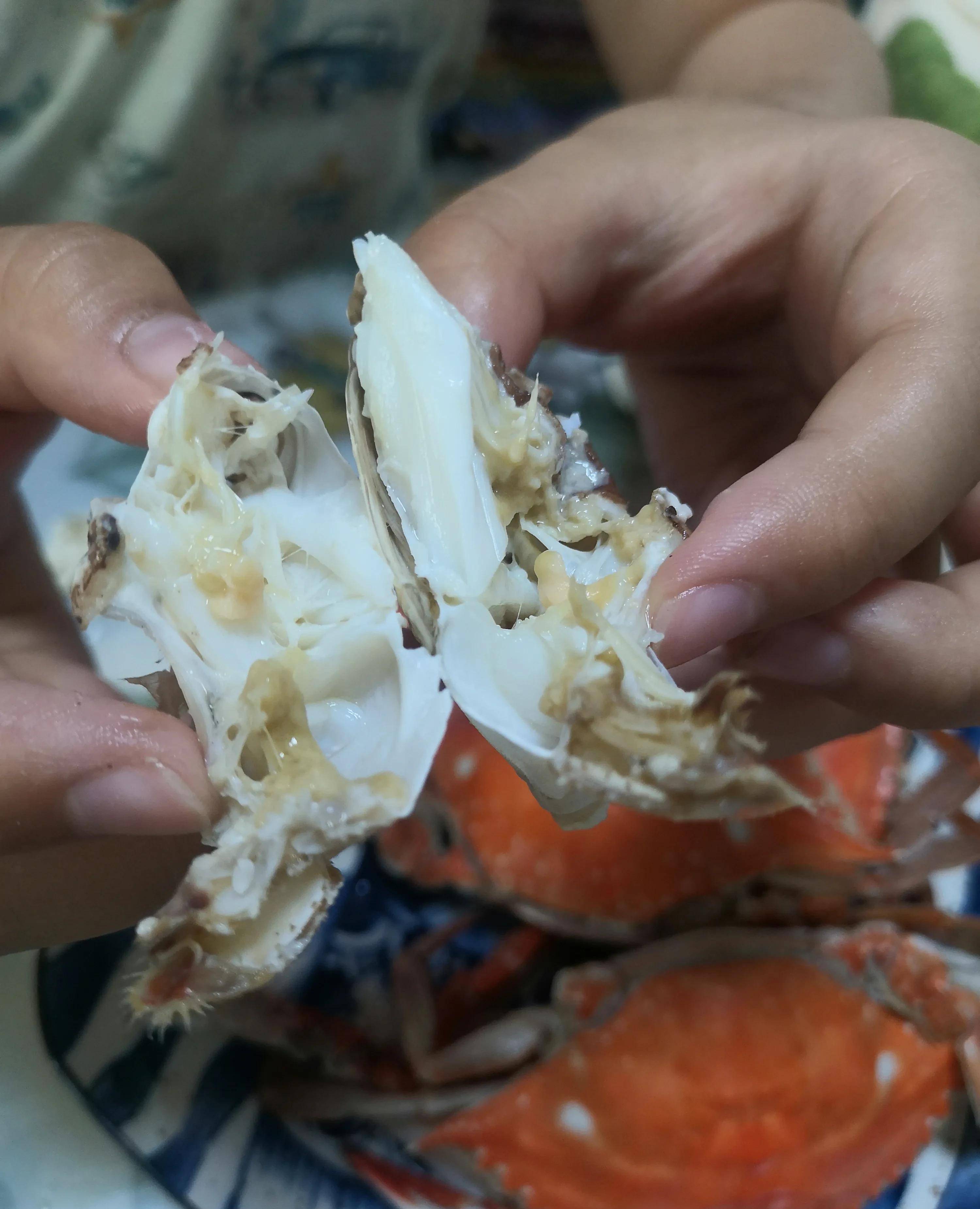 4月的螃蟹口感非常鲜甜,四只都是二母子,还没有蟹膏,所以我感觉现在应该是吃公蟹的时候,我今天清蒸着吃的,咬开蟹甲吸食着鲜甜的汁水,感觉应该把它做海鲜粥来吃,非常的鲜甜这样吃有点浪费了,主要肚里没膏,打开肚子里面还是一碗黄汤水,味道苦涩不好吃,还是主要吃蟹肉。我们家都喜欢吃肚子里的膏,估计下个月五一节之后能满膏,二母非常好吃了就。