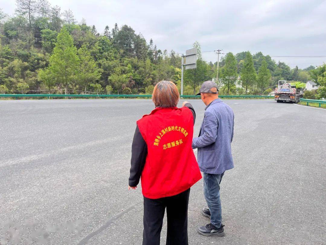 ▲休宁县青年志愿者在高速路口为游客 指引旅游路线