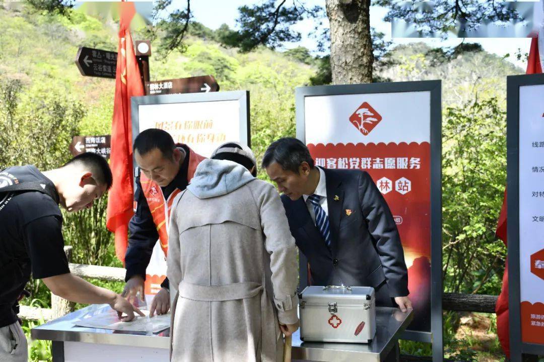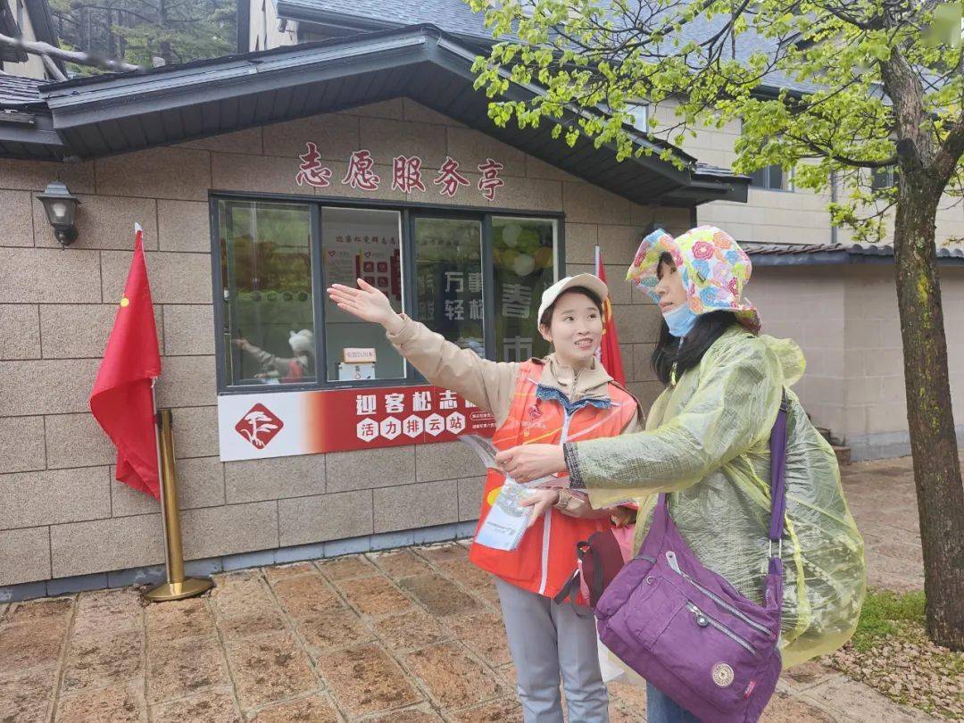 ▲黄山风景区迎客松志愿者为游客提供旅游政策咨询服务