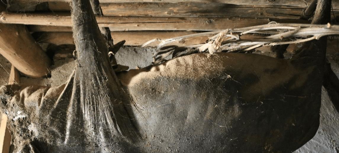 然后用黄泥和酥油塞住猪的耳朵、鼻子、眼睛和嘴巴,还有切口,把气吹胀,埋在草木灰中,大概需要半年之久,需要吸干猪肉中的水分。
