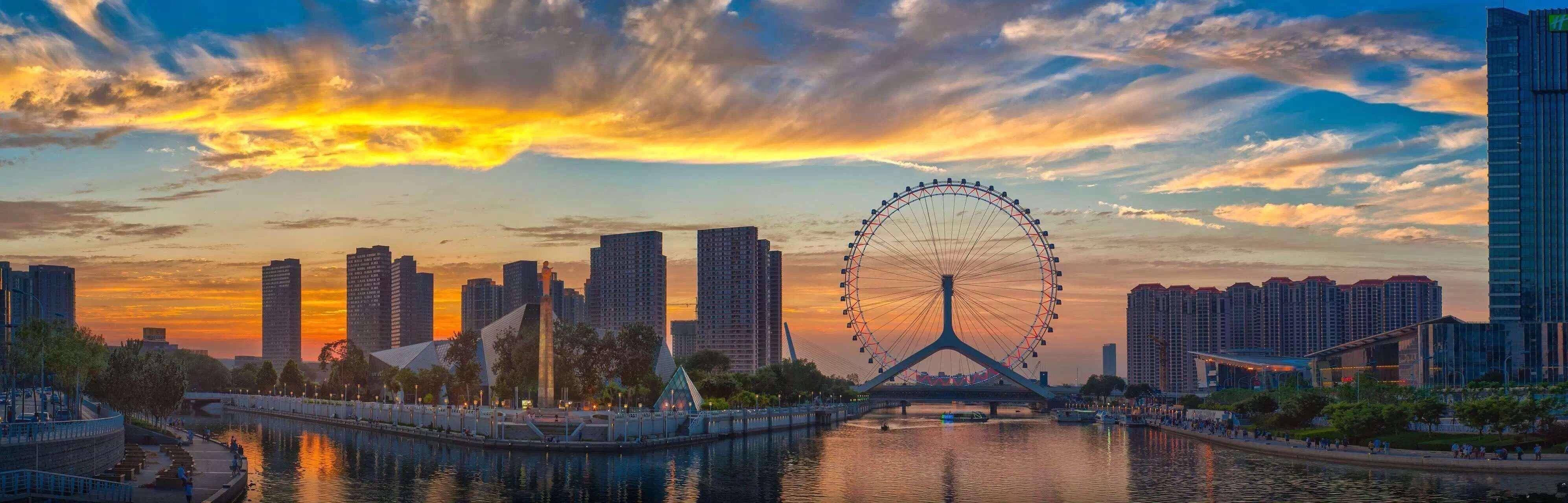 全称天津永乐桥摩天轮,跨海河连接河北区与红桥区,是一座跨河建设、桥轮合一的摩天轮,兼具观光和交通功用。摩天轮旋转一周所需时间为28分钟,到达最高处时,周边景色一览无余,甚至能看到方圆40公里以内的景致,被誉为“天津之眼”。