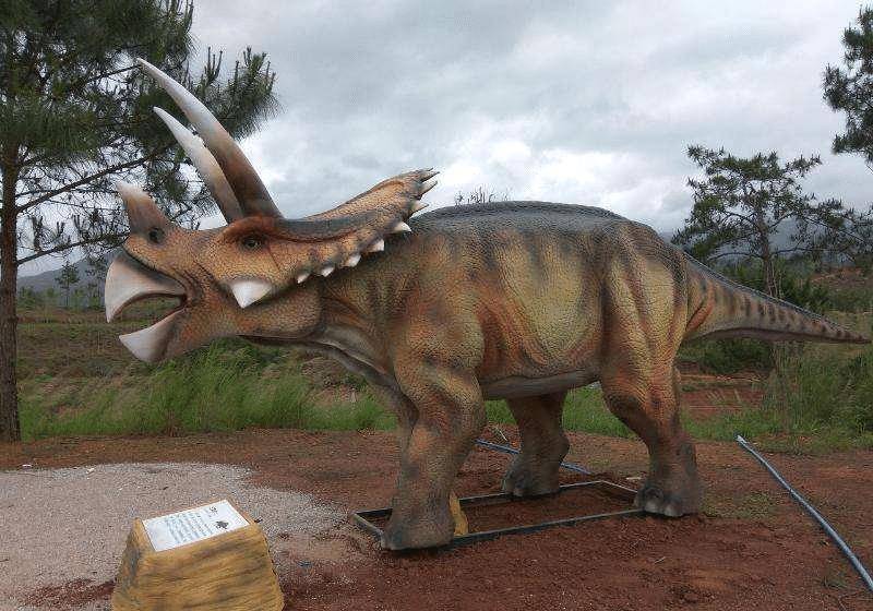 在这个乐园的山坡上有很多形状各异,看起来十分霸气的恐龙,细数之后一共有18个,这18个恐龙也是代表着恐龙的时间顺序来排列,而且它们在制作上也是非常用心,几乎上是还原了恐龙1:1的大小去打造的。