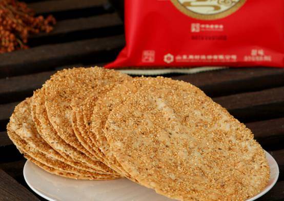 周村烧饼和我们常吃的烧饼还不太一样,与其说它是烧饼,不如说是粘满芝麻的锅巴,薄薄脆脆的,并且面饼上覆盖着一层芝麻,味道就是纯粹的麦子和芝麻原本的香气,微咸不腻。