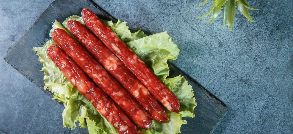 广式腊肠是结合当地独特的制作工艺再用酒和蔗糖的比例搭配制作而成的,是腊肠市场上的绝对主角。如果您来到广东的话,一定要带点回去让家人尝尝。